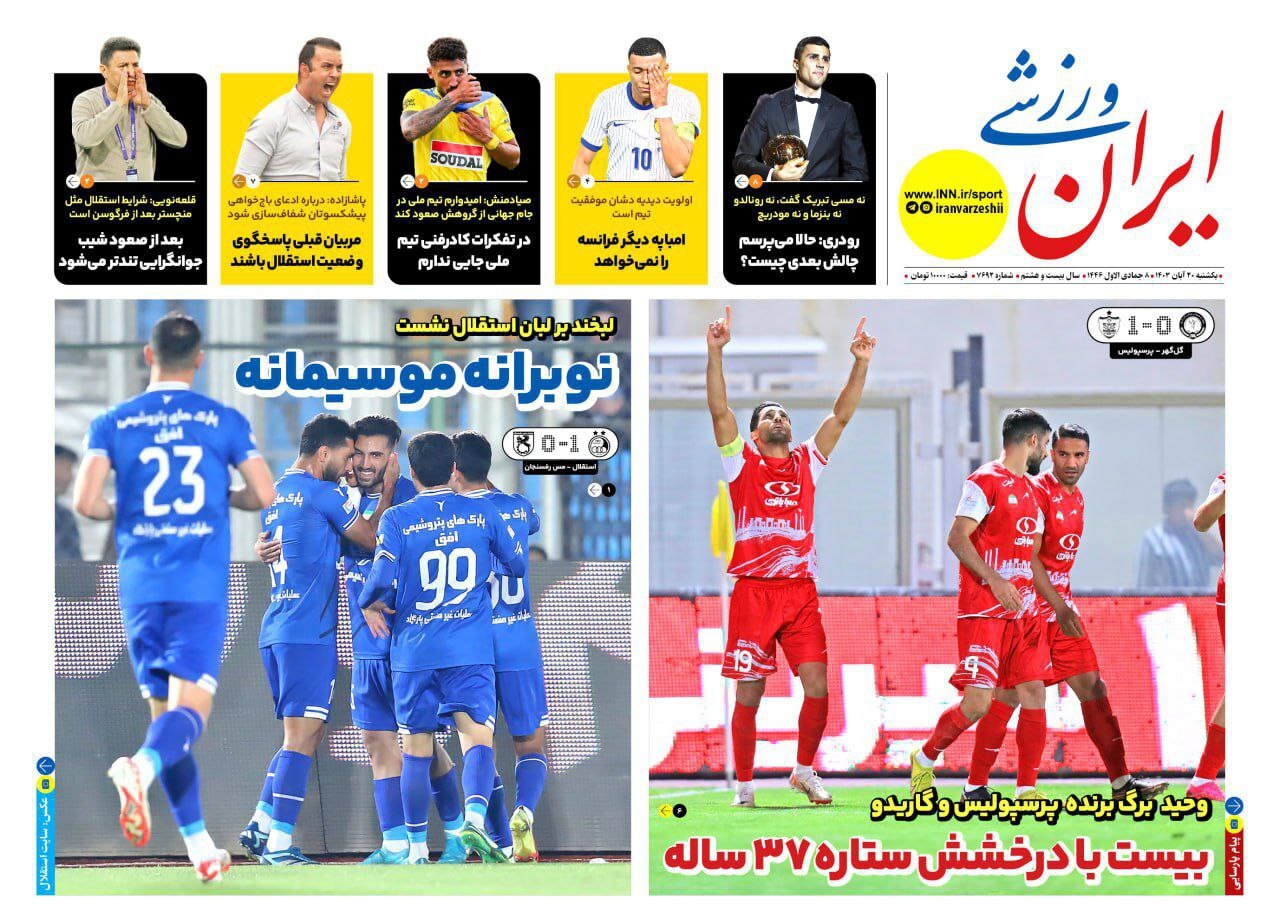 روزنامههای ورزشی یکشنبه ۲۰ آبان ۱۴۰۳
