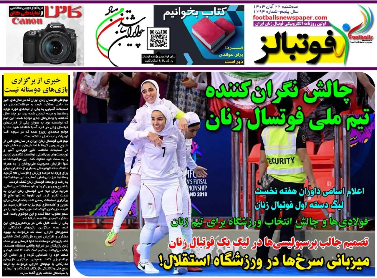 روزنامههای ورزشی سه شنبه ۲۲ آبان ۱۴۰۳