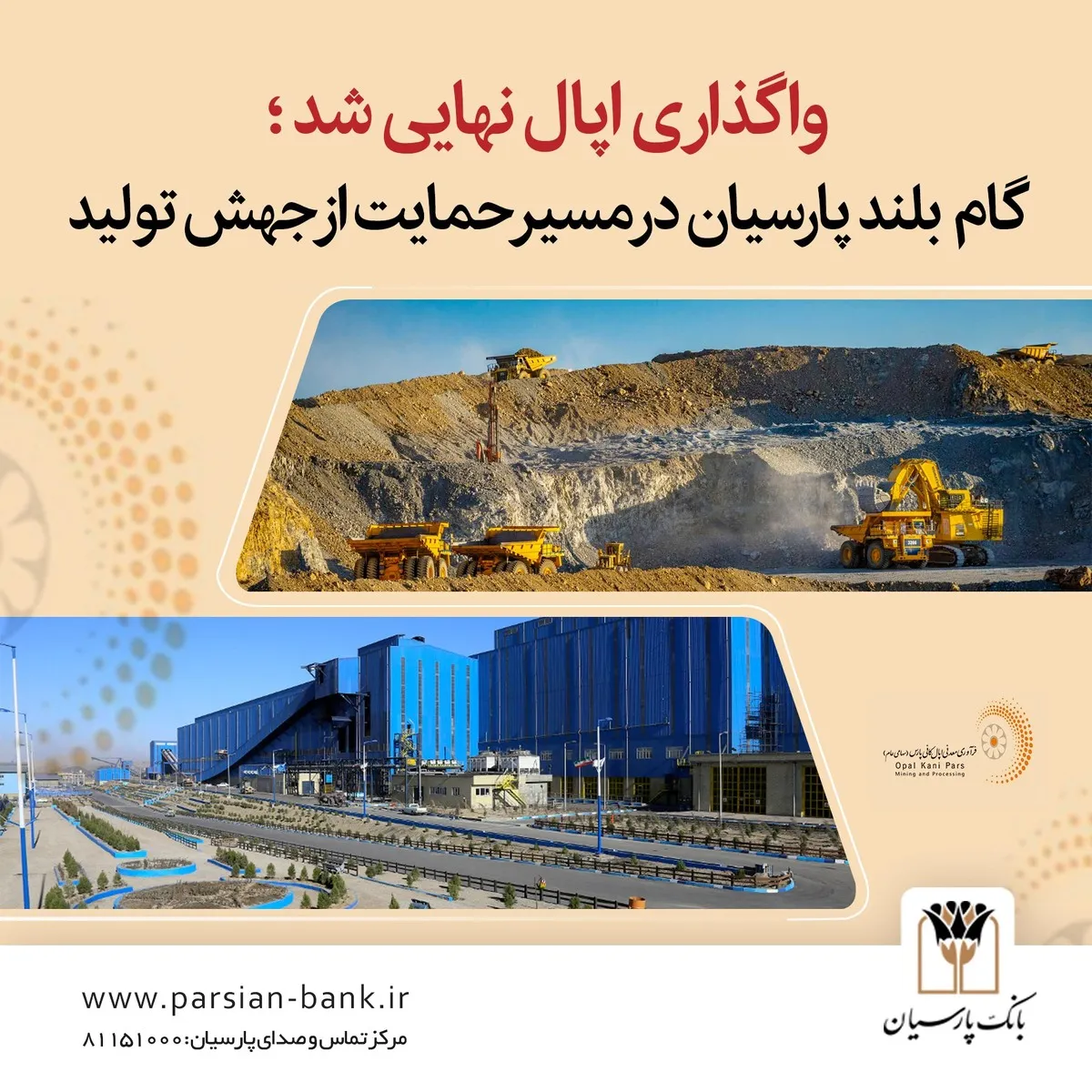 در مرداد ماه امسال، مدیرعامل بانک پارسیان مهم‌ترین برنامه این بانک را مولدسازی دارایی‌ها و فروش اموال و دارایی‌های مازاد اعلام کرد. حال، پس از کمتر از سه ماه، این وعده به واقعیت پیوسته و بانک پارسیان سهام خود در شرکت فرآوری معدنی اپال کانی پارس را واگذار کرد.