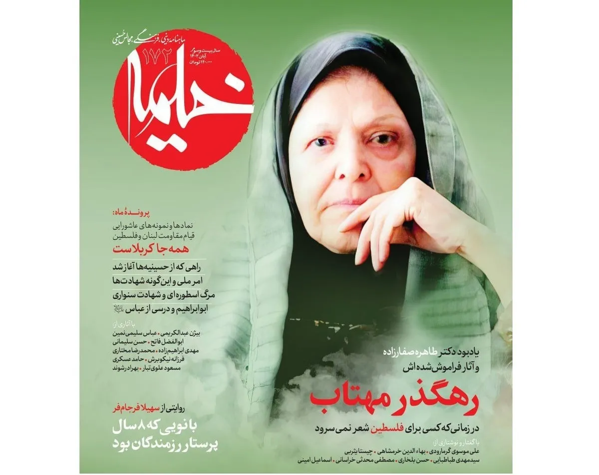 به گزارش خبرگزاری آنا، صد و هفتاد و دومین شماره مجله خیمه در آبان ماه ۱۴۰۳ همزمان با ایام فاطمیه، ویژه یادبود مرحوم دکتر طاهره صفارزاده منتشر شد.
