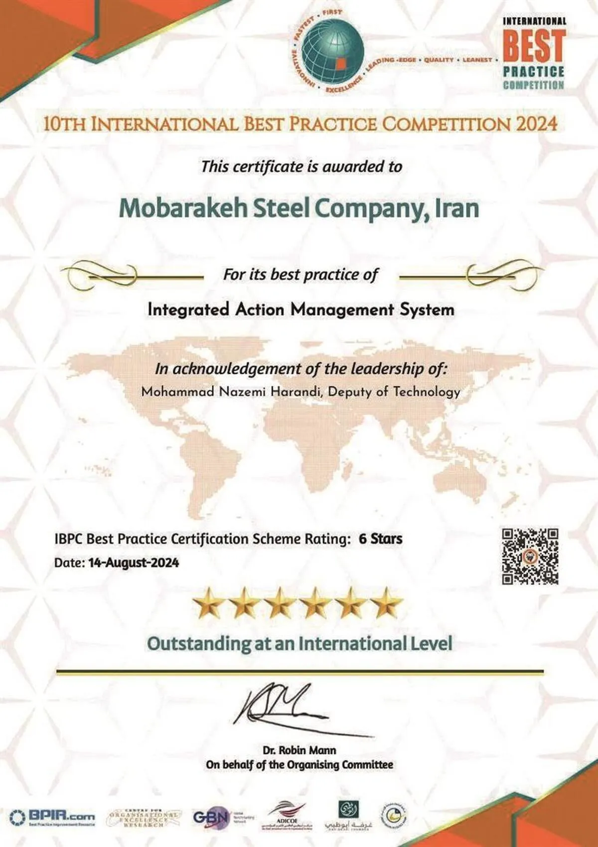 اختصاص نشان ششستاره جایزه بینالمللی IBPC به شرکت فولاد مبارکه
