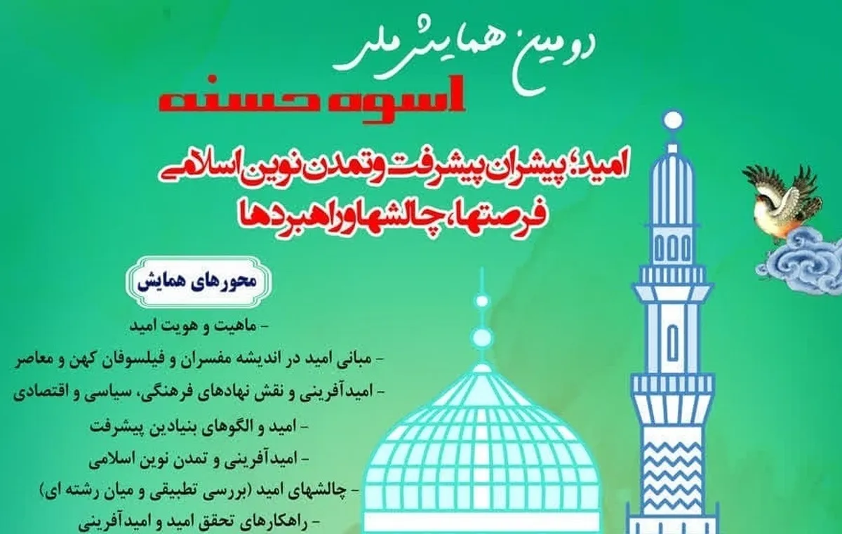 به گزارش خبرنگار آنا، دومین همایش ملی علمی ـ پژوهشی اسوه حسنه با رویکرد «امید؛ پیشران پیشرفت و تمدن نوین اسلامی: فرصتها، چالشها و راهبردها» با همکاری مؤسسه علمی، فرهنگی و هنری امامت و مهدویت در دانشگاه آزاد اسلامی واحد گرگان برگزار میشود.