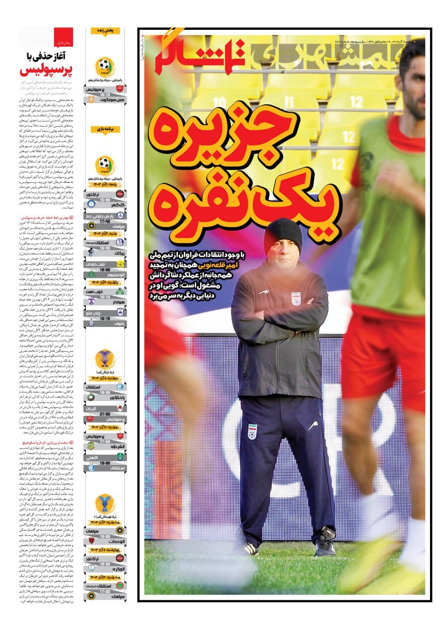 روزنامههای ورزشی شنبه ۱5 آذر ماه ۱۴۰۴