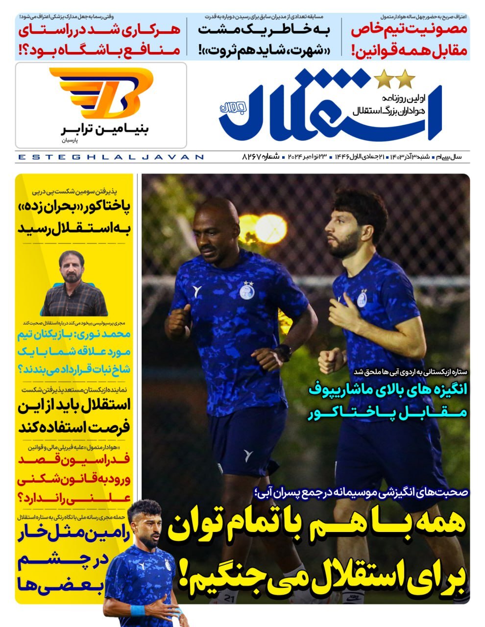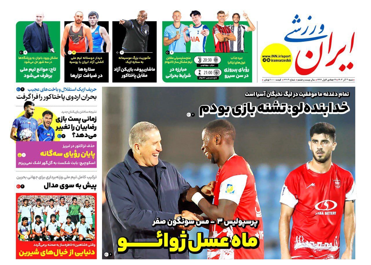 روزنامههای ورزشی شنبه سوم آذر ۱۴۰۳
