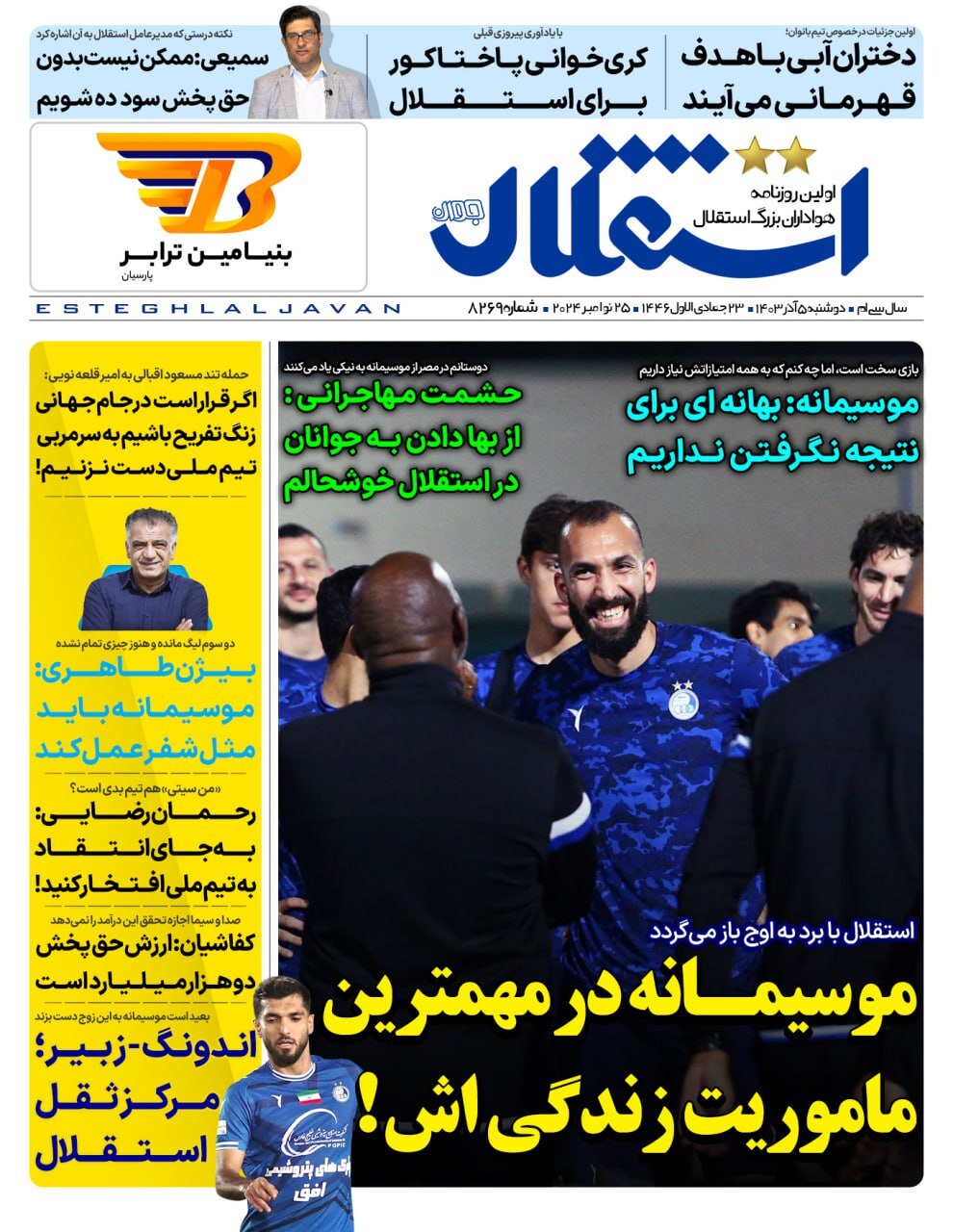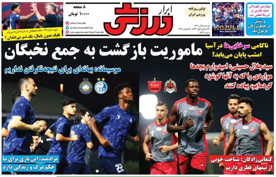روزنامههای ورزشی دوشنبه ۵ آذر ۱۴۰۳