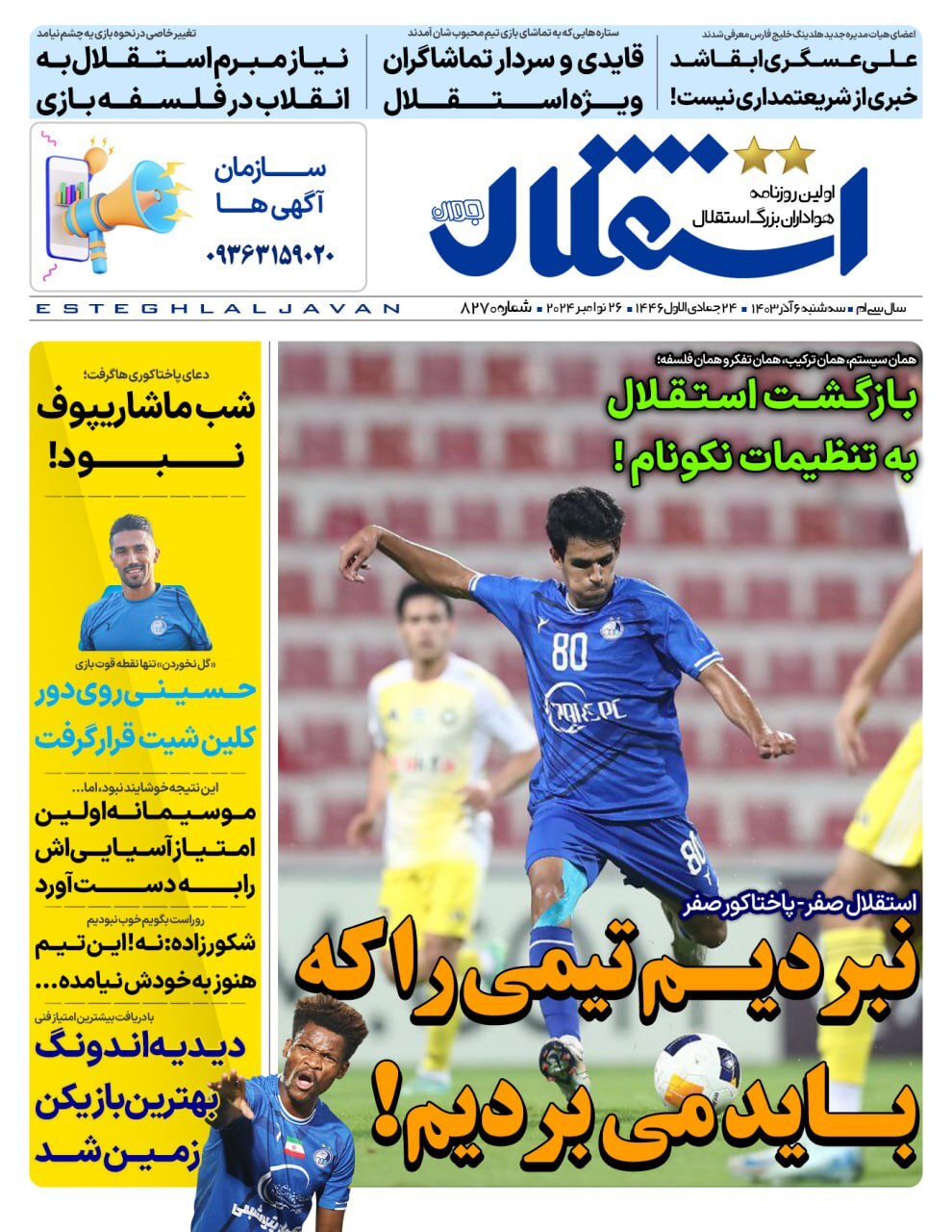 روزنامههای ورزشی سه شنبه 6 آذر ۱۴۰۳