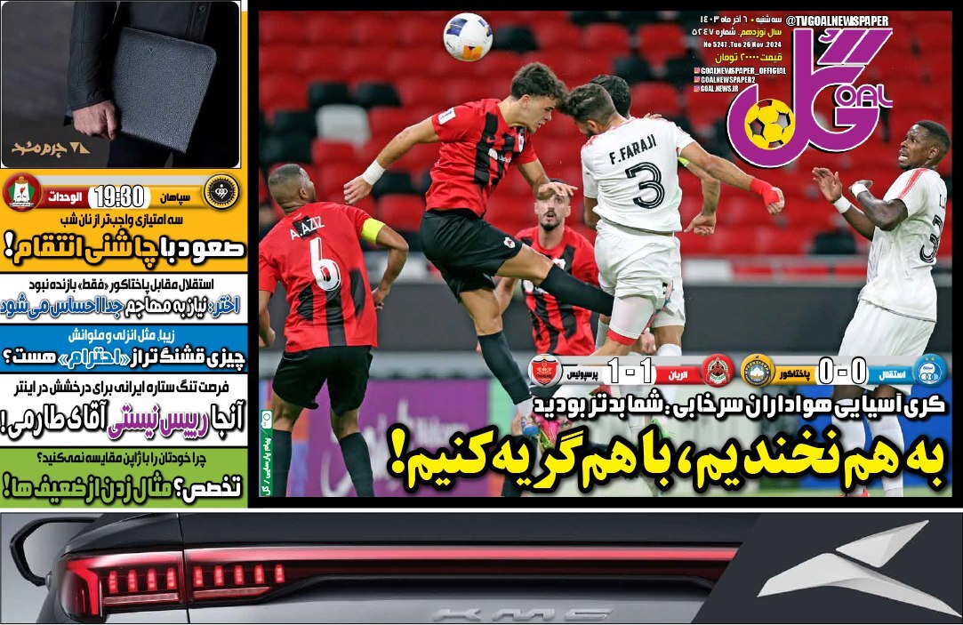 پیشخوان روزنامههای ورزشی سه شنبه 6 آذر ۱۴۰۳ را مشاهده کنید.