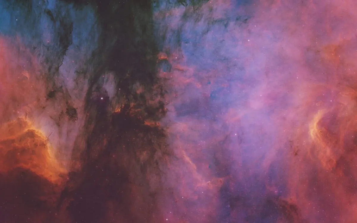 این سحابیها در برابر ابرهای درخشان سحابی NGC ۷۰۰۰ خودنمایی میکنند. او برای مطالعه از نمای نزدیک، از فیلترهای پالتهابل استفاده کرد و ۱۳، ¼ ساعت نوردهی گرفت تا نور و تاریکی در حرکت را ثبت کند.