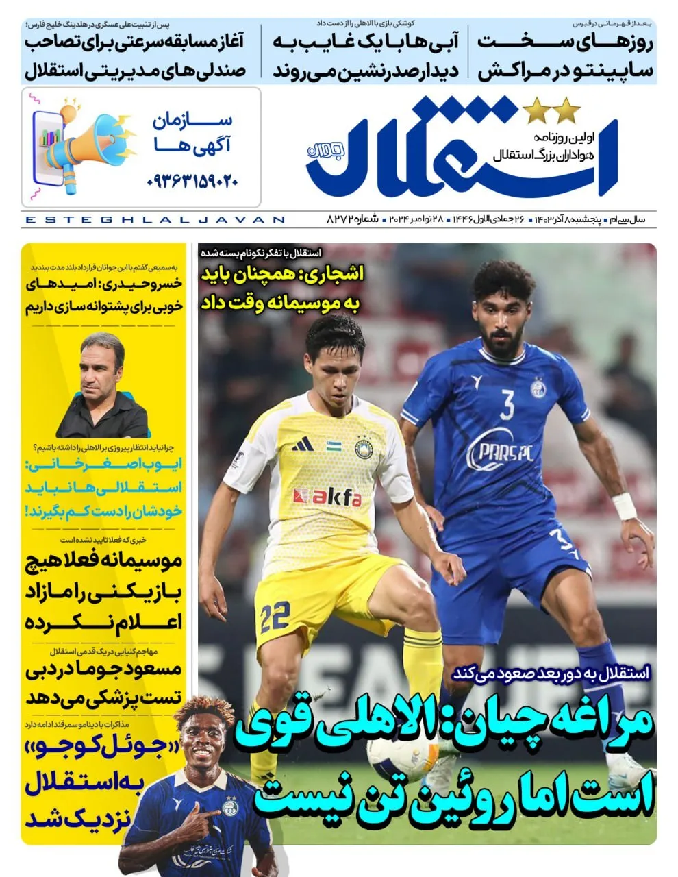 روزنامههای ورزشی پنجشنبه 8 آذر ۱۴۰۳