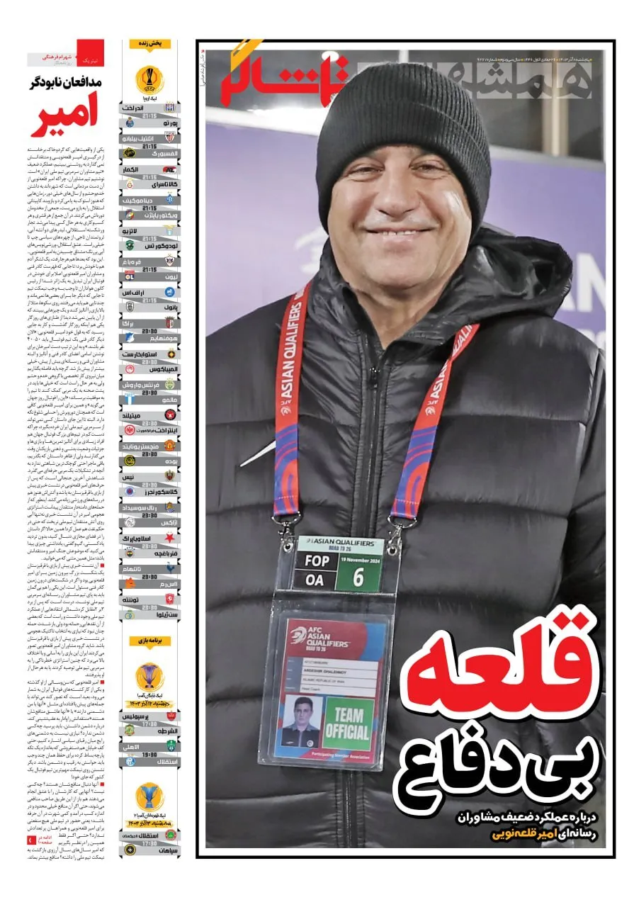 پیشخوان روزنامههای ورزشی پنجشنبه 8 آذر ۱۴۰۳ را مشاهده کنید.