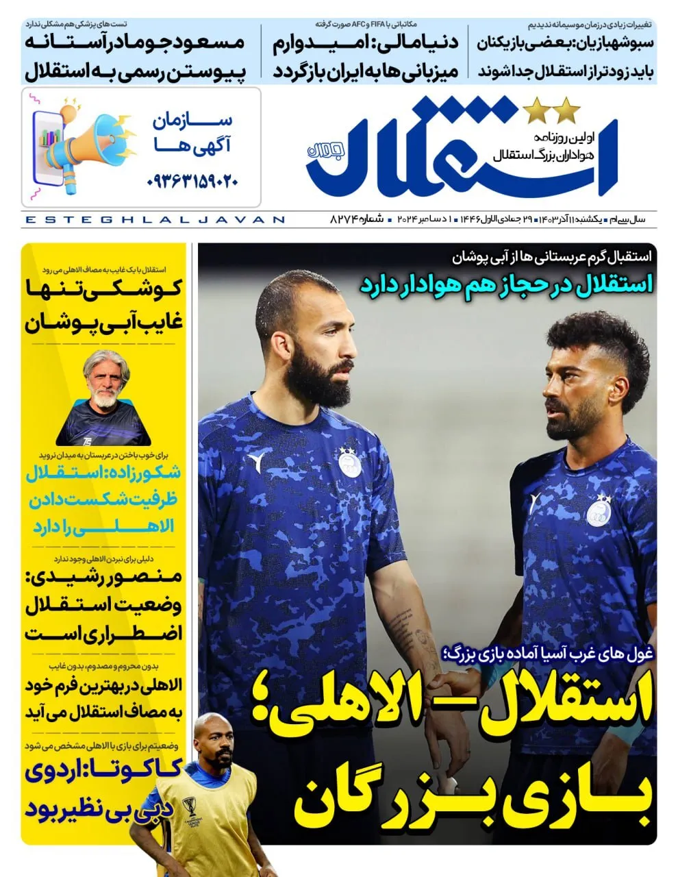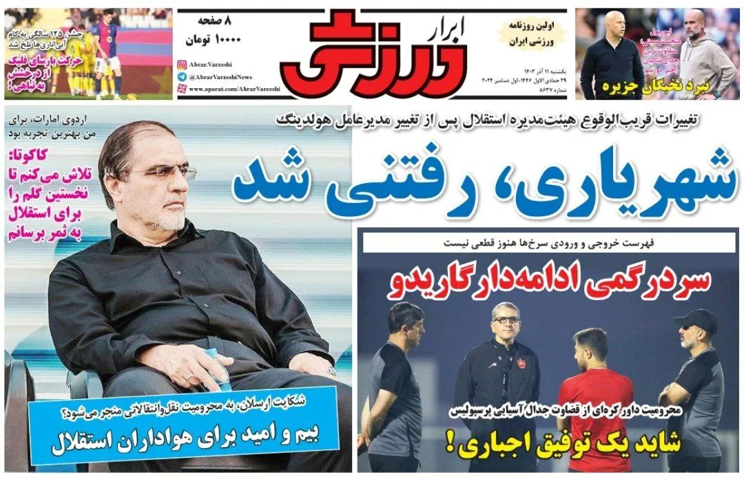 روزنامههای ورزشی یکشنبه ۱۱ آذر ۱۴۰۳