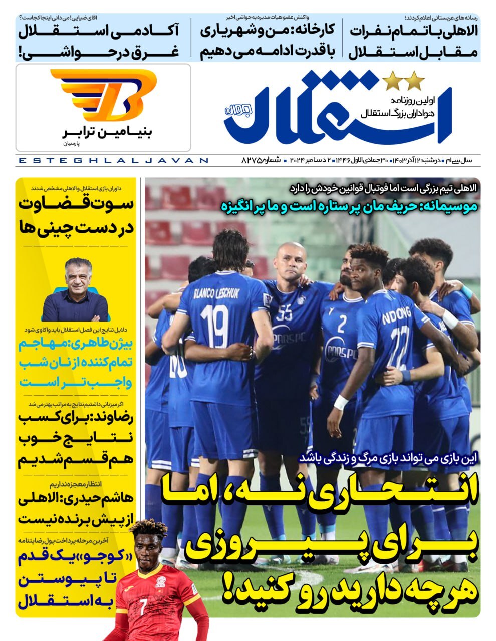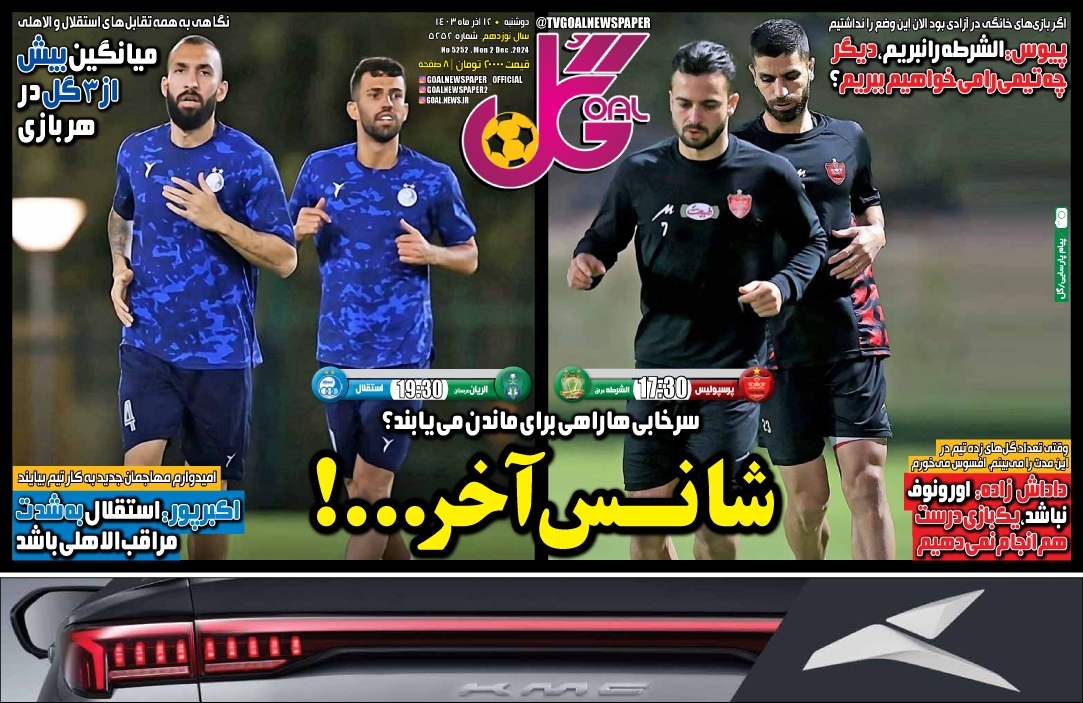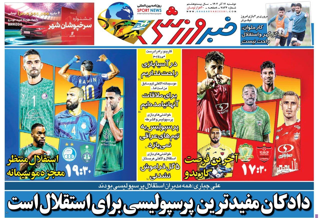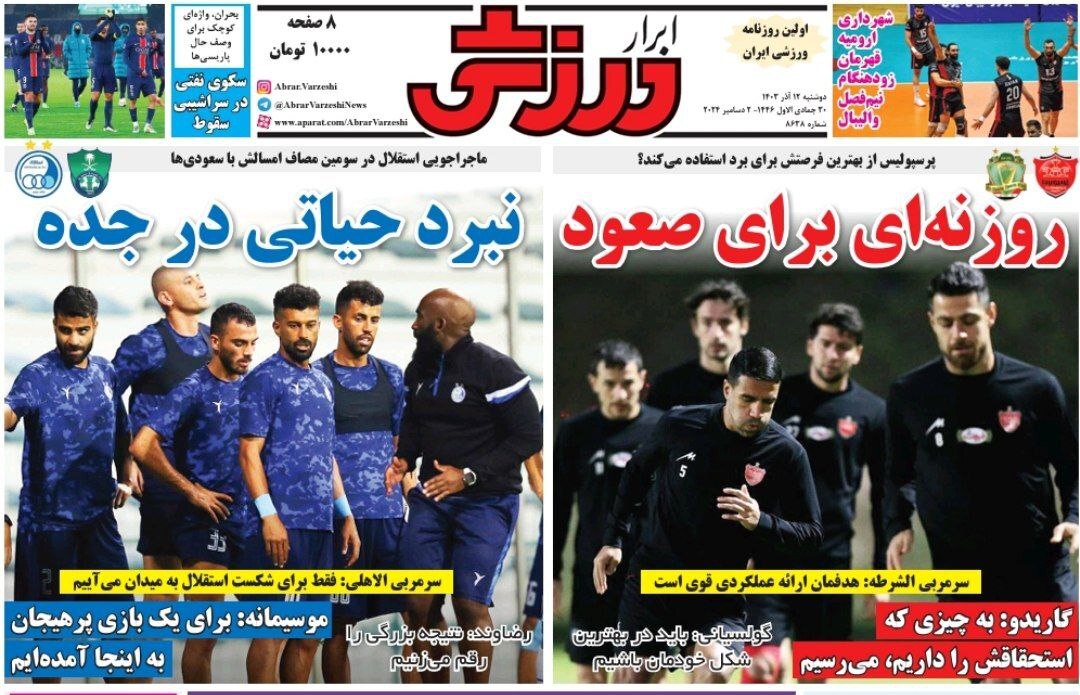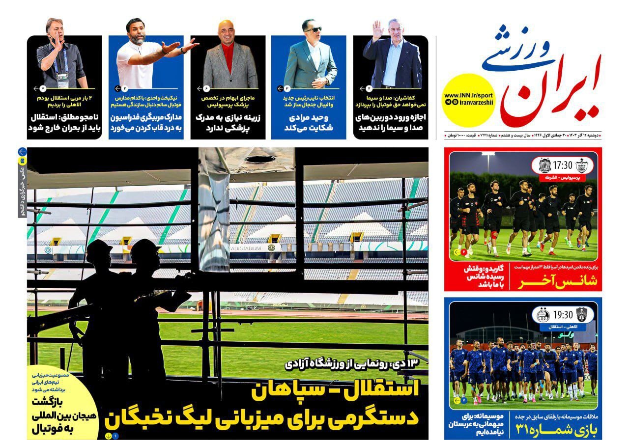 روزنامه های ورزشی دوشنبه 12 آذر 1403