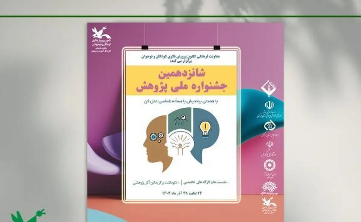 شانزدهمین جشنواره ملی پژوهش از ۲۴ تا ۲۶ آذر ۱۴۰۲ از سوی اداره کل آموزش و پژوهش کانون پرورش فکری کودکان و نوجوانان در استان مرکزی برگزار خواهد شد.