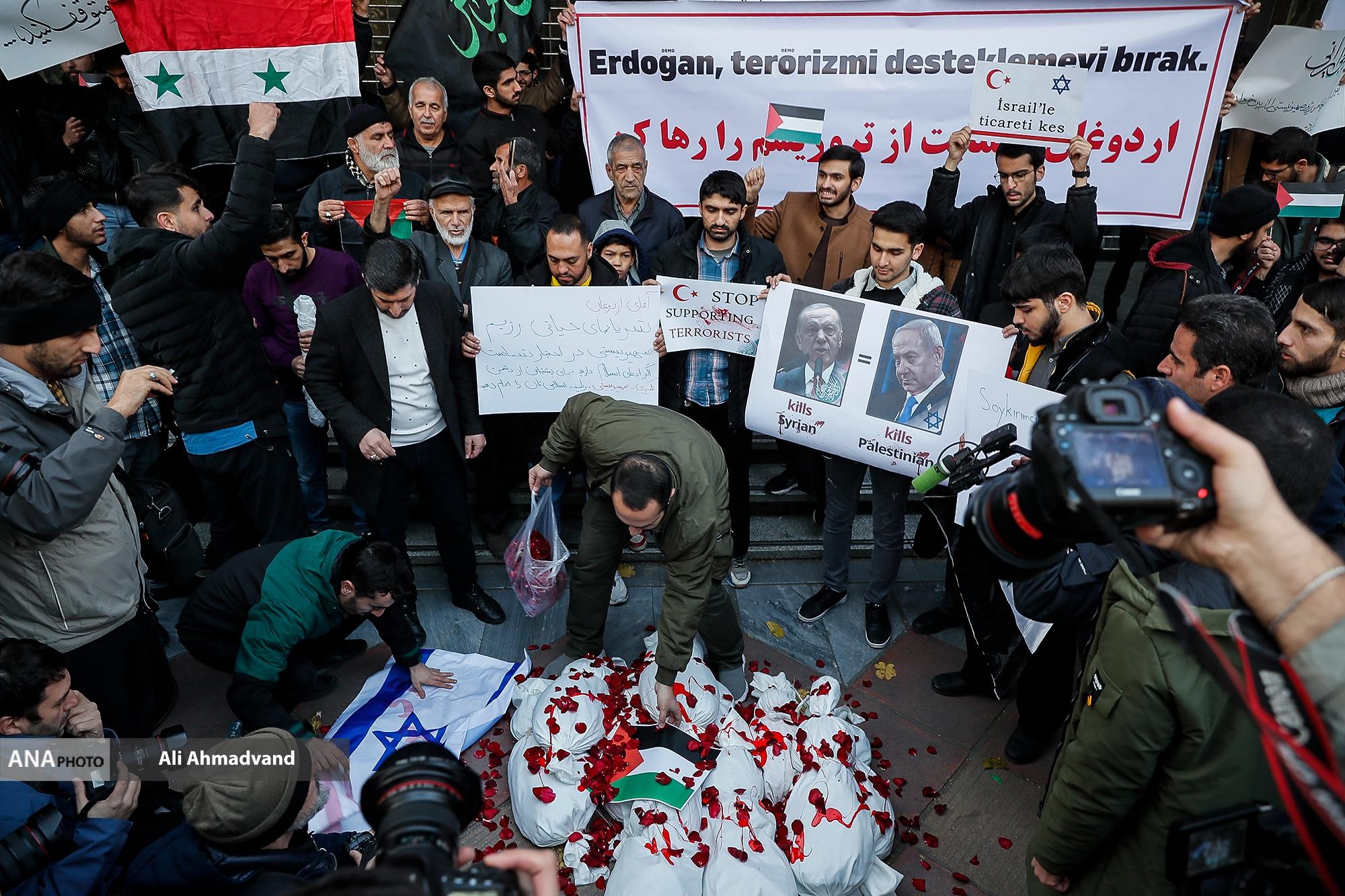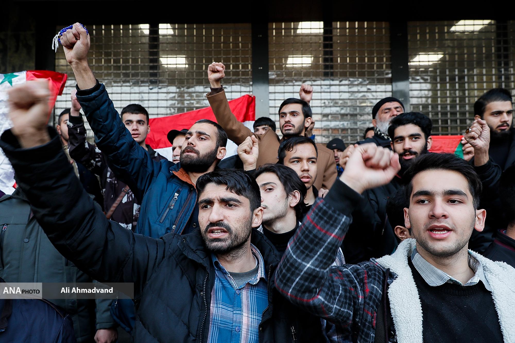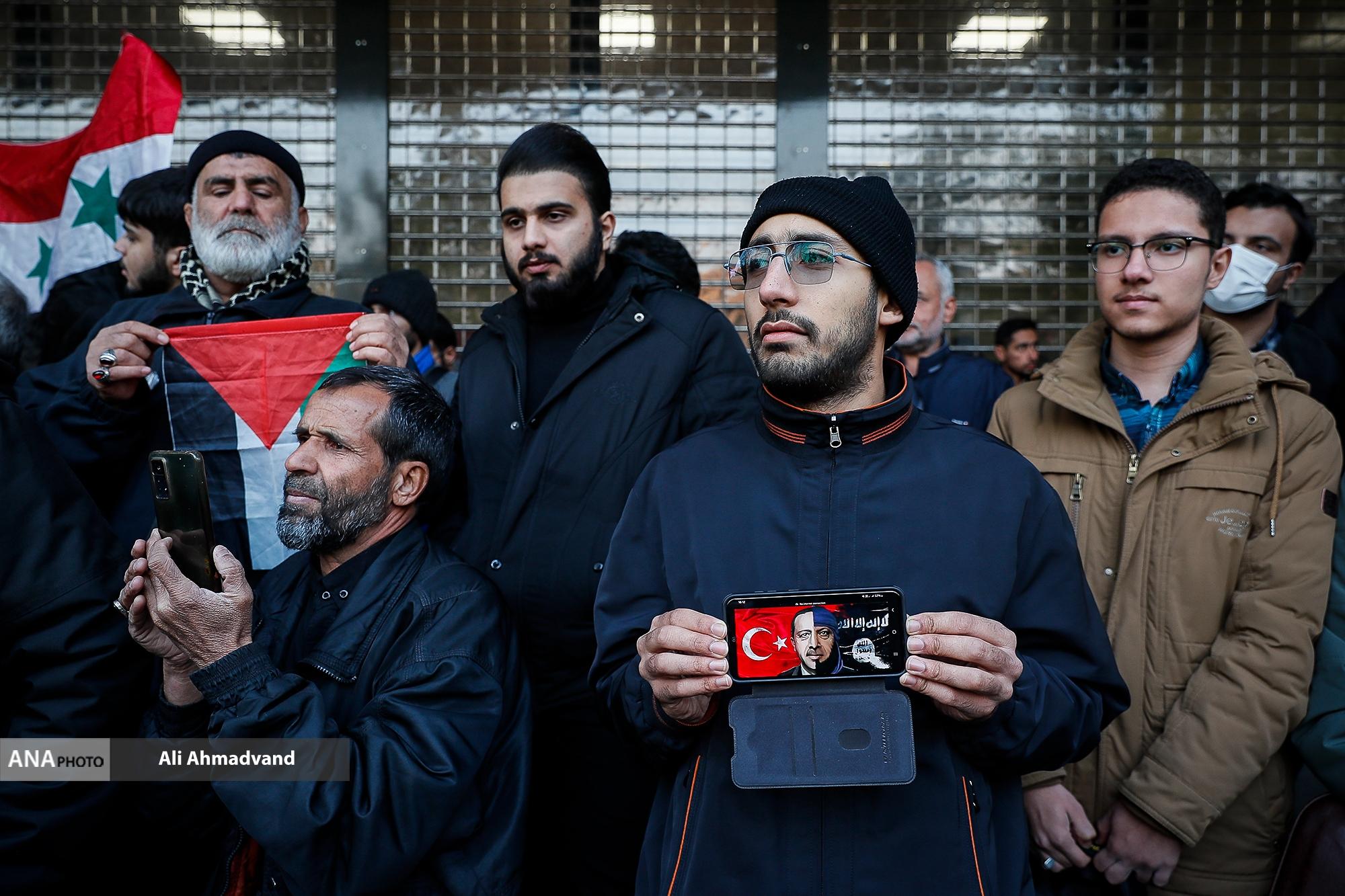 تجمع مردمی و دانشجویی با موضوع محکومیت اقدامات گروهک‌های تروریستی حاضر در سوریه و هم‌چنین جنایات رژیم صهیونیستی بعدازظهر امروز مقابل سفارت ترکیه برگزار شد.