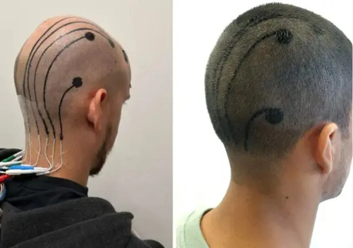 پنج شرکت کننده با مو‌های تراشیده برای آزمایش خالکوبی‌های الکترونیکی انتخاب شدند. روی پوست سر هر شرکت کننده، هم الکترود‌های خالکوبی الکترونیکی و هم الکترود‌های EEG اعمال شد.