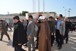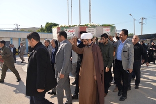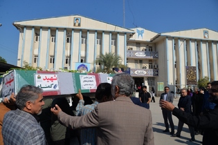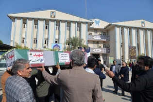 پیکر مطهر شهید خوشنام در میان نواهای کربلایی، عطرافشانی، پرواز گلبرگهای گلهای پرپر شده با حضور سعید رازقی رئیس دانشگاه آزاد اسلامی بوشهر، حجتالاسلام مسعود داستار مسئول نهاد نمایندگی مقام معظم رهبری در دانشگاه آزاد اسلامی بوشهر، اعضای هیئت رئیسه، دانشجویان، استادان، کارکنان، مسئولان بسیج دانشجویی، کارمندی و استادان و جمعی از مدیران استانی در این دانشگاه تشییع شد.
