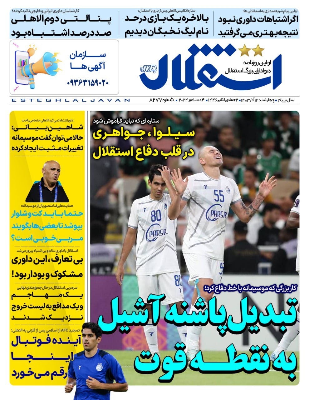 روزنامه های ورزشی چهارشنبه ۱4 آذر ۱۴۰۳