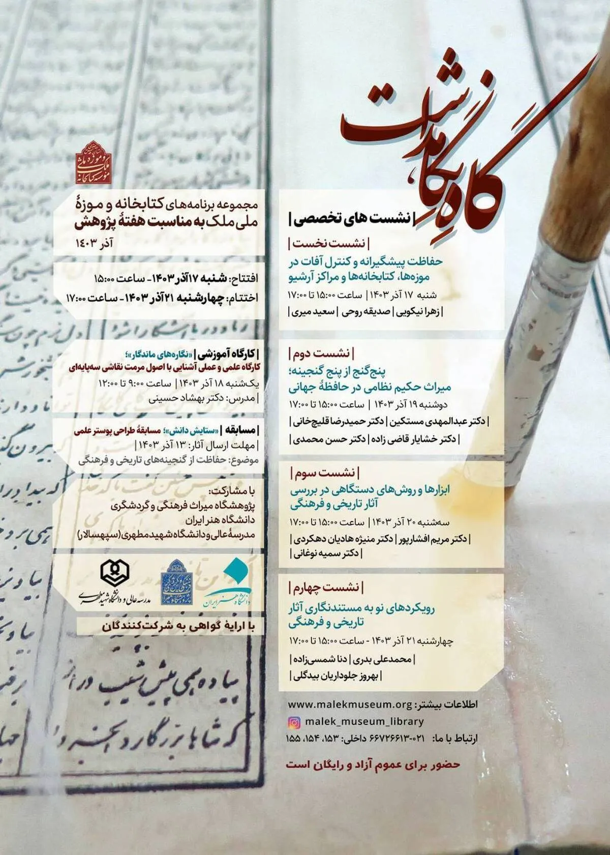 برنامههای هفته پژوهش کتابخانه و موزه ملی ملک اعلام شد