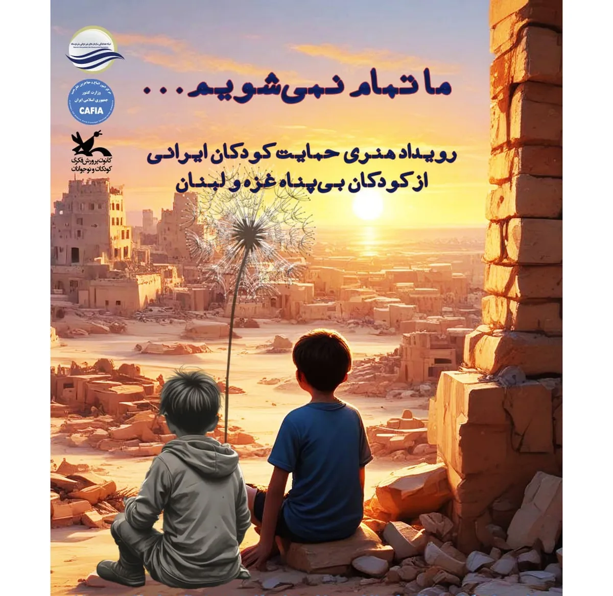 به گزارش خبرگزاری آنا، رویداد هنری بین‌المللی حمایت کودکان ایرانی از کودکان بی‌پناه غزه و لبنان تحت عنوان «ما تمام نمی‌شویم» با همراهی و همکاری ۱۳ سازمان مردم نهاد، شبکه ملی سازمان‌های غیردولتی بشردوستانه و کانون پرورش فکری کودکان و نوجوانان در دو روز میزبان مخاطبین خواهد بود.