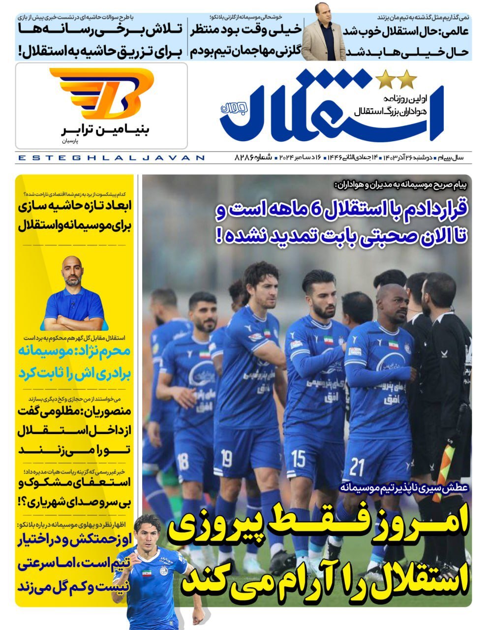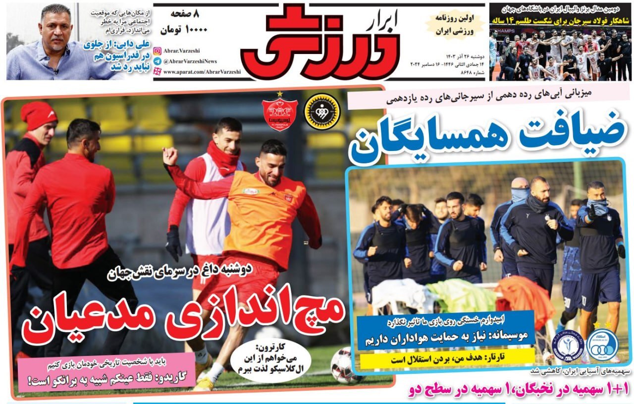 روزنامه‌های ورزشی دوشنبه 26 آذر ۱۴۰۳