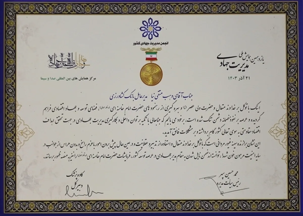 انتخاب مدیرعامل بانک کشاورزی به عنوان مدیر برگزیده جهادی سال ۱۴۰۳
