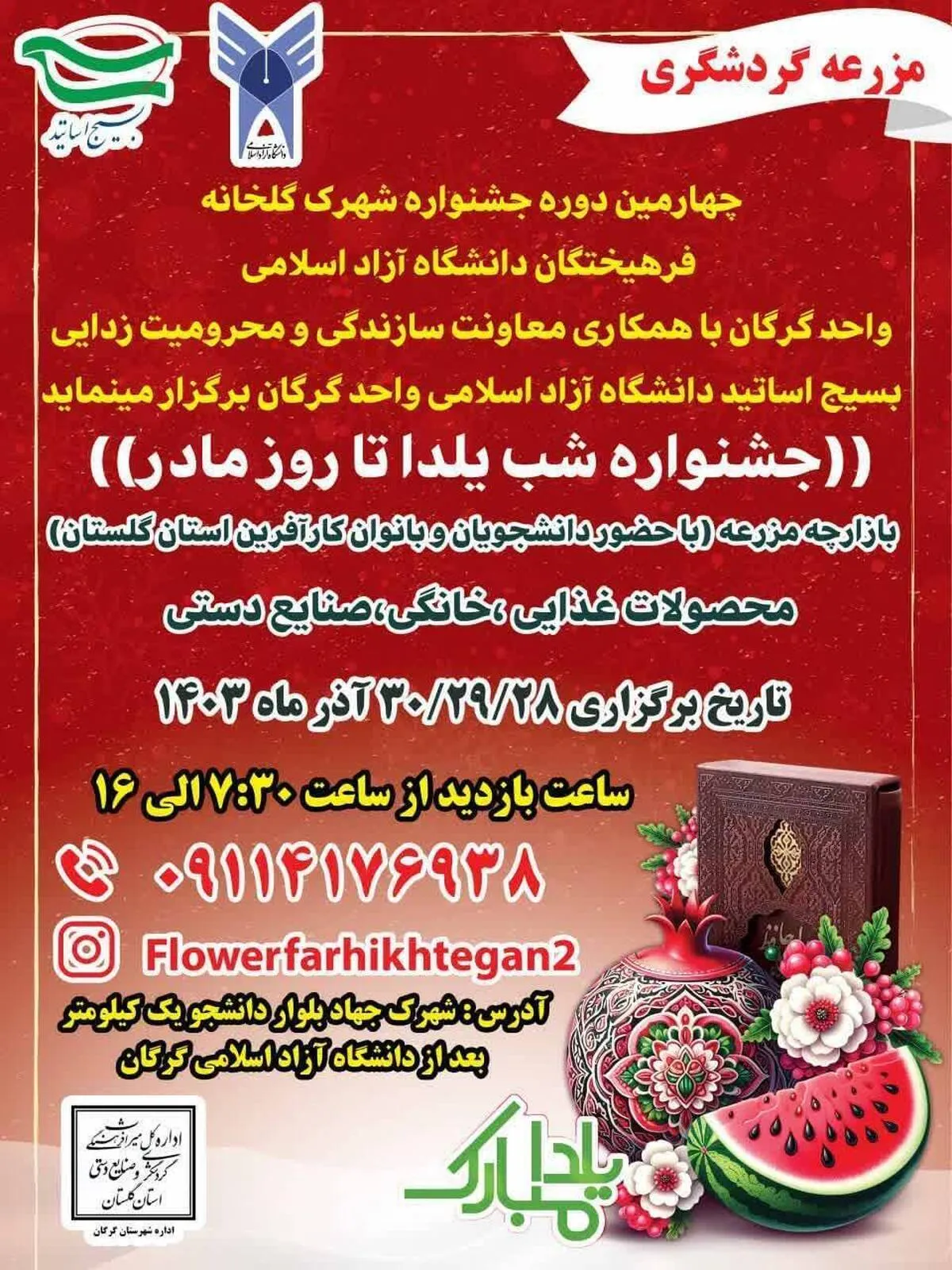 جشنواره یلدا تا روز مادر شهرک گلخانهای فرهیختگان گرگان + جزئیات