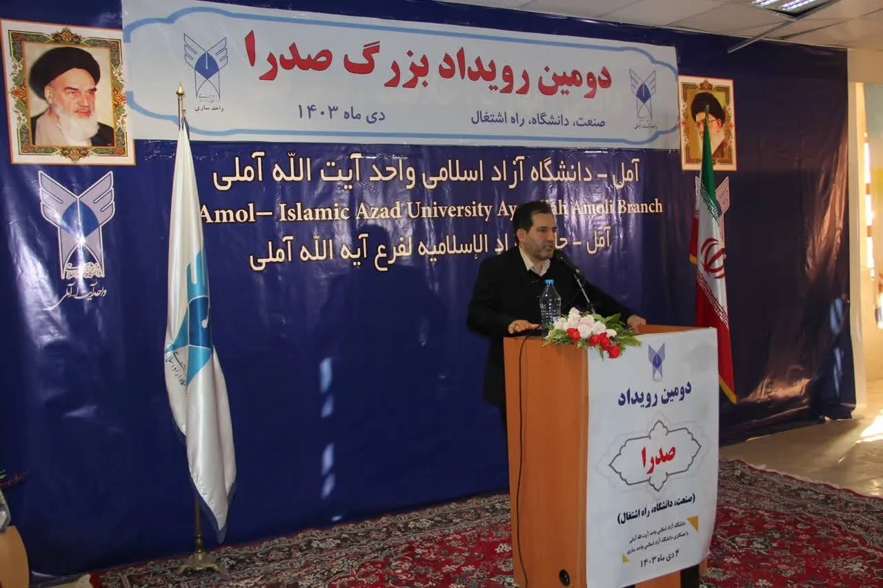 در آغاز این مراسم حامد برجسته رئیس دانشگاه آزاد اسلامی واحد آیت الله آملی ضمن گزارشی از اقدامات صورت گرفته در برگزاری این رویداد، اظهار کرد: رویداد صدرا با هدف ایجاد فرصتهای شغلی و شبکه مستمر ارتباط حقیقی بین دانشگاه و صنعت بر اساس سند تحول و تعالی دانشگاه آزاد اسلامی بنیاد نهاده شده که فرصت طلایی را برای دانشجویان فراهم میکند.