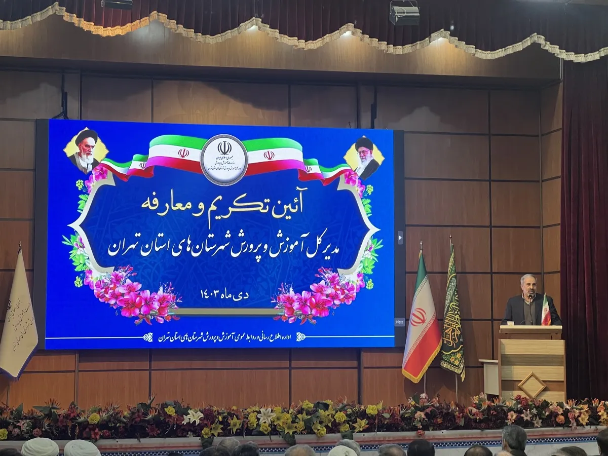 به گزارش خبرنگار آنا، آئین تکریم و معارفه مدیرکل آموزش و پرورش شهرستانهای استان تهران، صبح روز شنبه ۸ دیماه ۱۴۰۳ در سالن همایش ولایت اداره کل آموزش و پرورش شهرستانهای استان تهران برگزار شد.