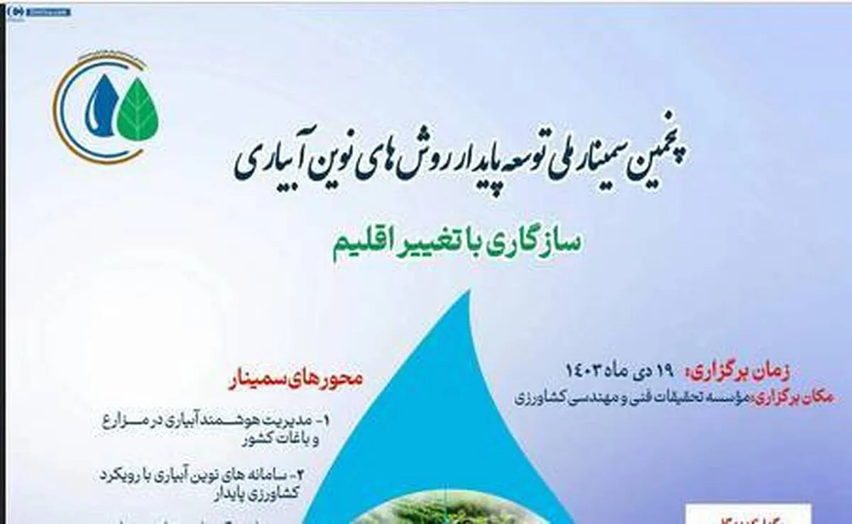 پنجمین سمینار ملی توسعه پایدار روش‌های نوین آبیاری برگزار می‌شود