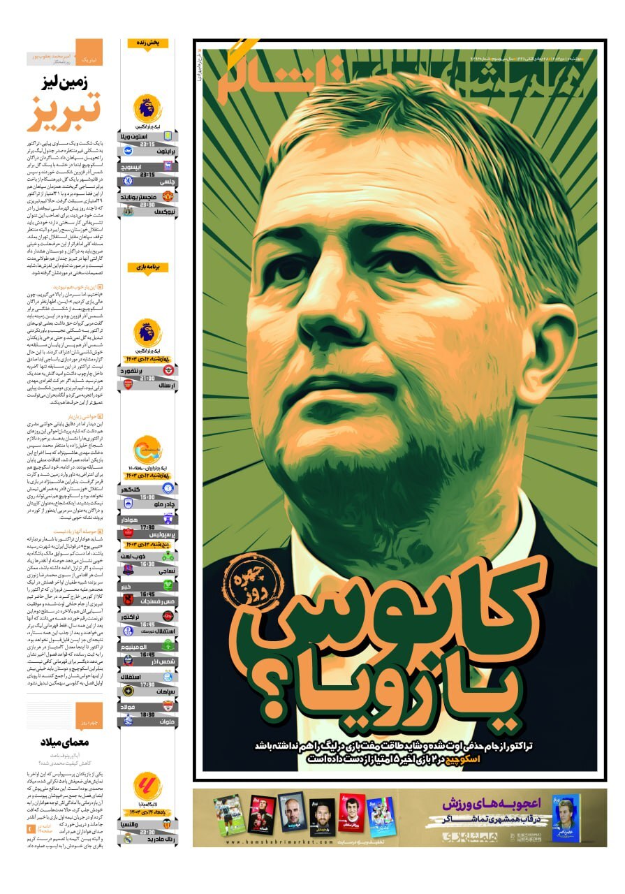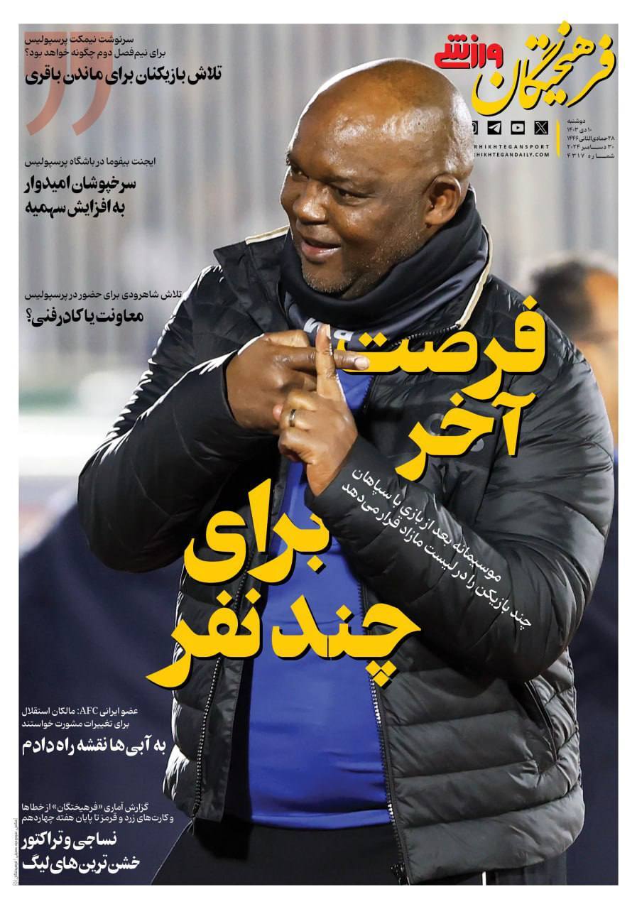 پیشخوان روزنامه‌های ورزشی دوشنبه ۱۰ دی ۱۴۰۳ را مشاهده کنید.