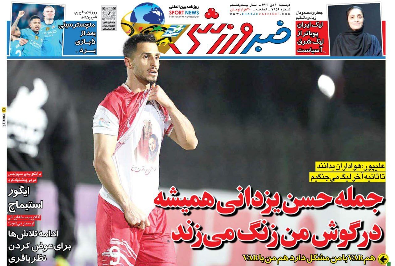 روزنامه‌های ورزشی دوشنبه ۱۰ دی ۱۴۰۳