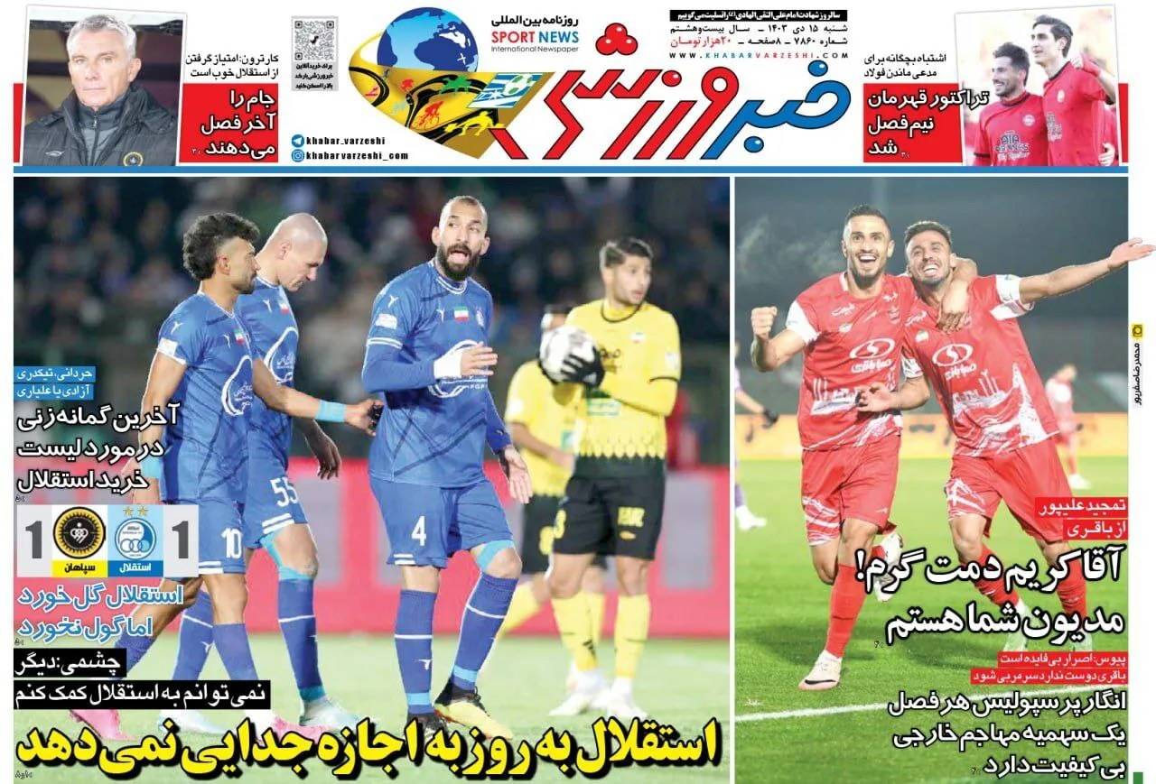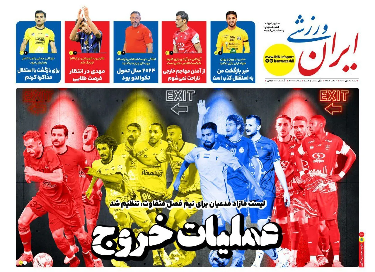 روزنامههای ورزشی شنبه 15 دی ۱۴۰۳