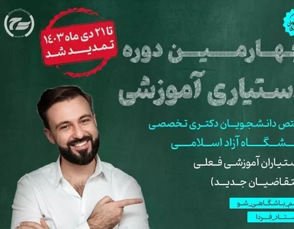 مهلت ثبت نام در چهارمین دوره دستیاری آموزشی دانشگاه آزاد اسلامی تمدید شد
