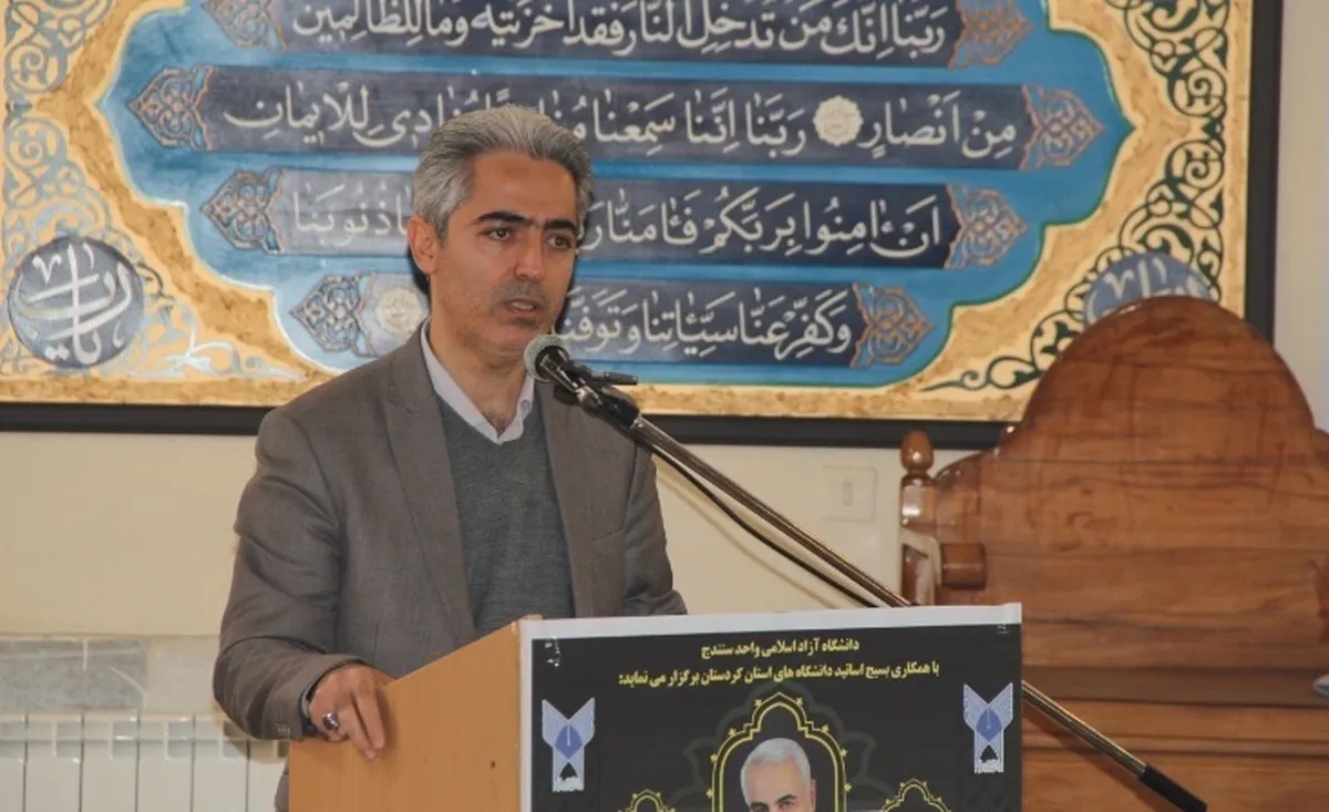 معاون فرهنگی و اجتماعی دانشگاه کردستان هم با بیان اینکه هر ملتی که گذشته خودش را فراموش کرد، حتماً محکوم به شکست است، ادامه داد: اگر بخواهیم مقاومت و بصیرت را در یک شخصی نشان دهیم، آن شخص به نظر بنده شهید سلیمانی است، چراکه شهید سلیمانی بصیرت ایمان و صبر را در تمام زندگی خودش داشت و این بصیرت وسیع در زندگی او موج میزد.