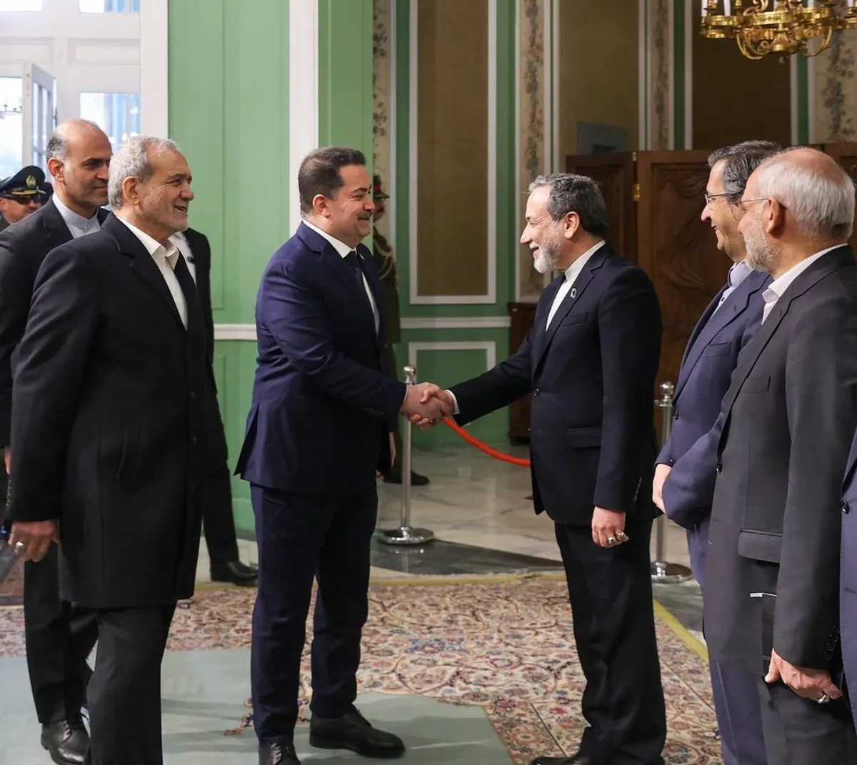 محمد شیاع السودانی نخستوزیر عراق پیش از ظهر چهارشنبه ۱۹ دیماه در پاسخ به دعوت مسعود پزشکیان و با استقبال عبدالناصر همتی وزیر امور اقتصاد و دارایی وارد تهران شد و پس از آن در مجموعه سعدآباد مورد استقبال رسمی مسعود پزشکیان رئیسجمهور قرار گرفت.