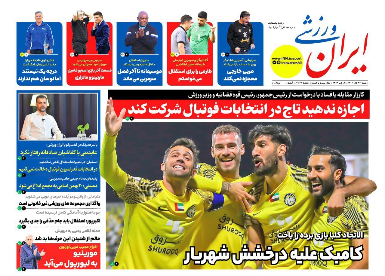روزنامه‌های ورزشی شنبه ۲۲ دی ۱۴۰۳