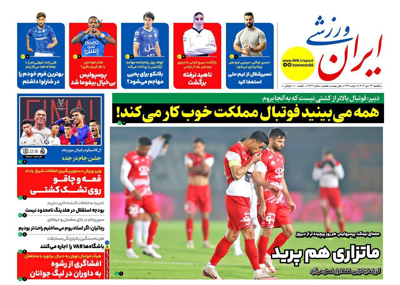 روزنامه‌های ورزشی یکشنبه ۲۳ دی ۱۴۰۳