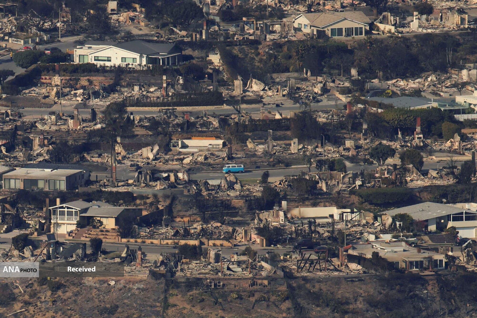 خبرگزاری سی بی اس نیوز آمریکا گزارش داد که آتشسوزیهای گسترده در منطقه لسآنجلس باعث ویرانی کامل برخی محلات و آوارگی دهها هزار نفر شده است.