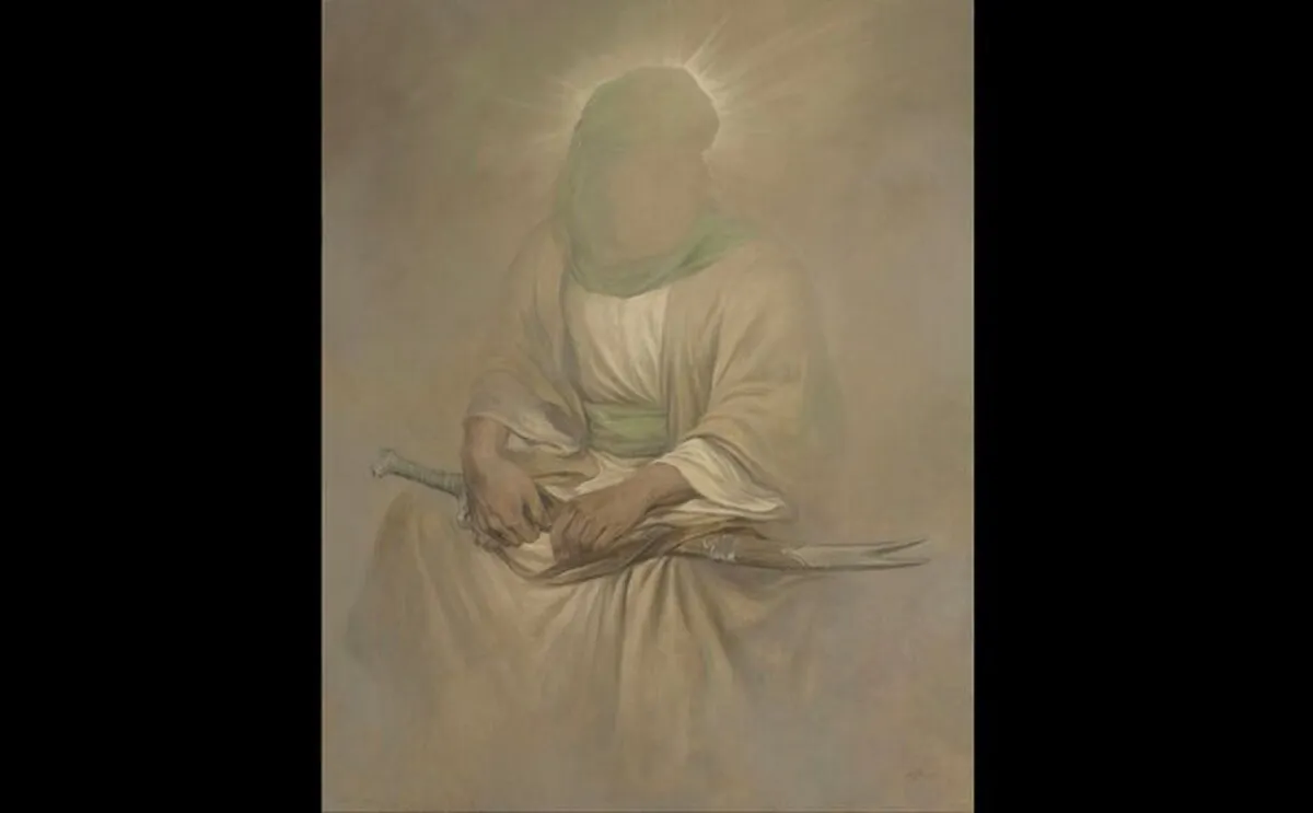 به گزارش خبرنگار آنا، نقاشی جدید حسن روحالامین با تصویری از قامت حضرت امیرالمومنین علیهالسلام و شمشیر ذوالفقار در دست ایشان ترسیم شده است.
