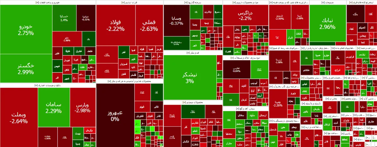 در معاملات امروز بازار، شاخص کل بورس تهران با ۱۹ هزار و ۲۳۹ واحد کاهش در ارتفاع ۲ میلیون و ۸۲۱ هزار و ۶۸ واحدی قرار گرفت.