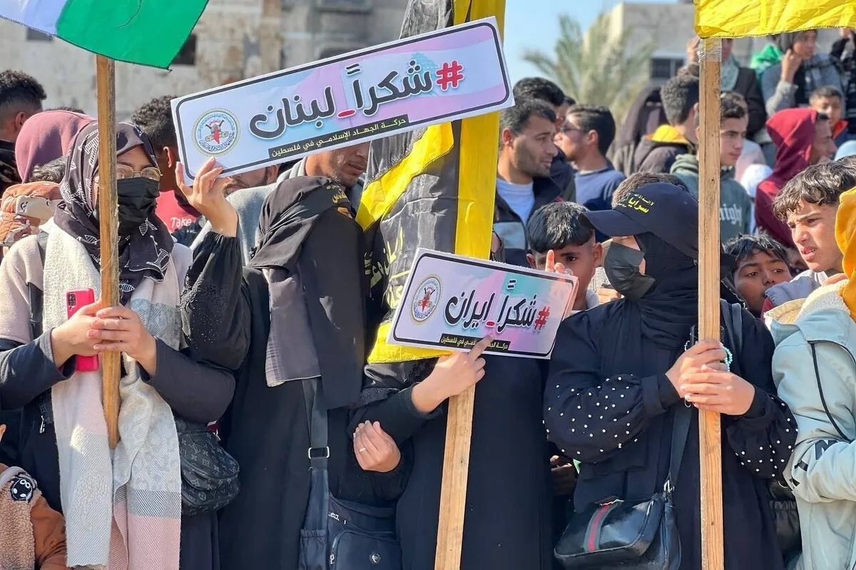 مردم نوار غزه در حاشیه تبادل اسرای اسرائیلی با اسرای فلسطینی، دست نوشتههایی در دست داشتند که در آنها از مردم ایران، لبنان و یمن تشکر و قدردانی کردند.