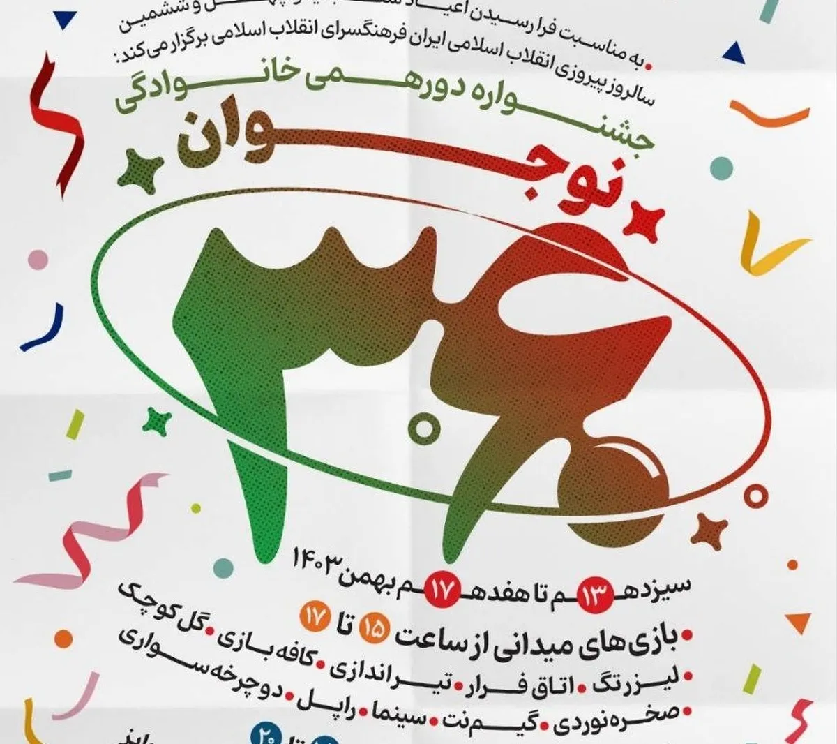 به گزارش خبرگزاری آنا، امیر احسان فر رییس فرهنگسرای انقلاب اسلامی با اعلام این خبر گفت: این مرکز به مناسبت اعیاد شعبانیه و در راستای گرامیداشت ایام پیروزی انقلاب اسلامی و دهه مبارک فجر، اقدام به برگزاری جشنواره دورهمی « نوجوان 360 » به مدت 5 روز از ساعت 15 تا 20 کرده است.