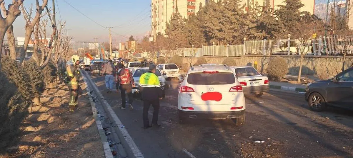 تصادف زنجیرهای ۱۱ خودرو در بزرگراه شهید بابایی + عکس