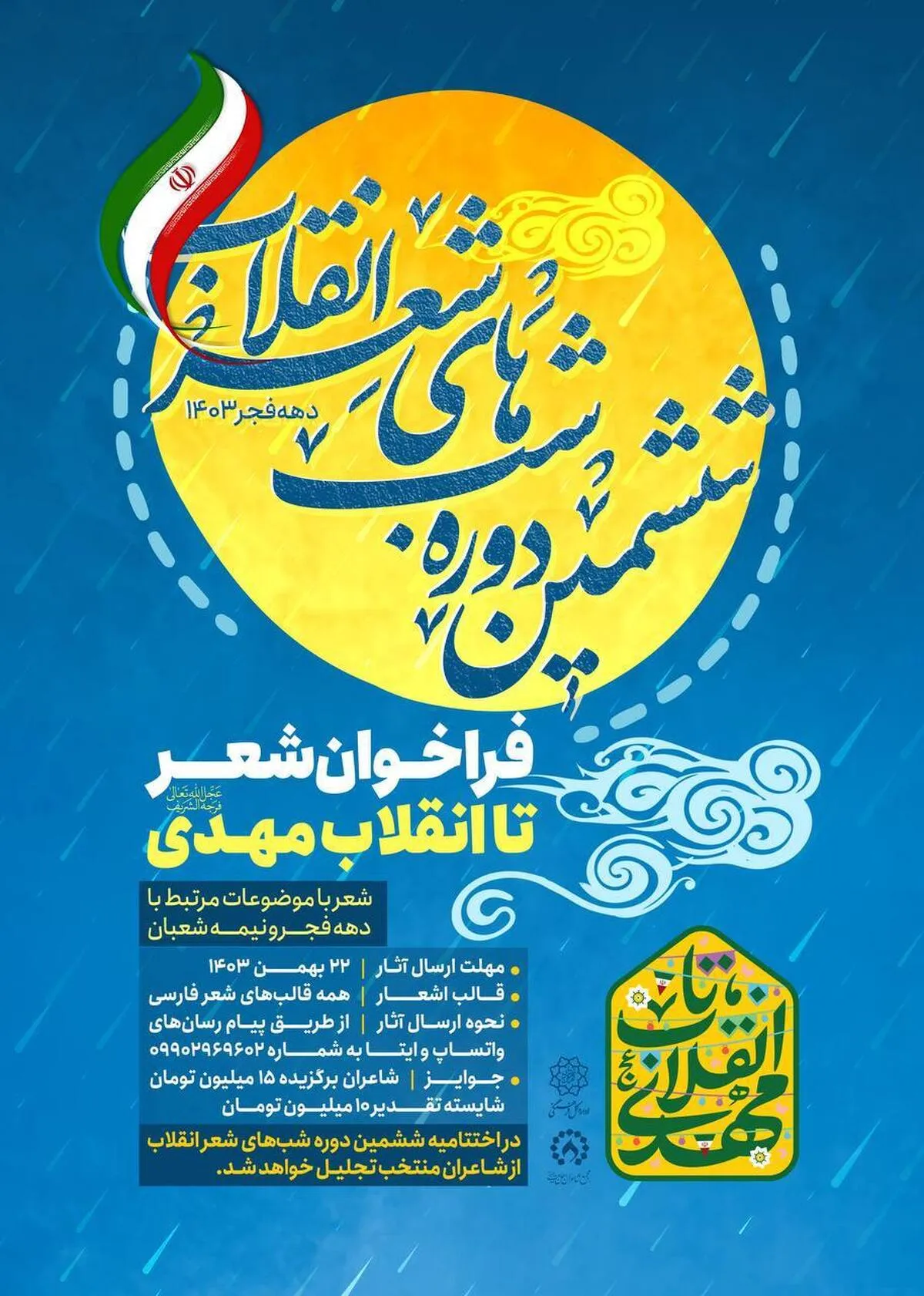 گفتنی است مراسم شب شعر «تا انقلاب مهدی» ۲۸ بهمن در ایوان شمس برگزار خواهد شد و طی آن برگزیدگان و منتخبین این فراخوان معرفی خواهند شد