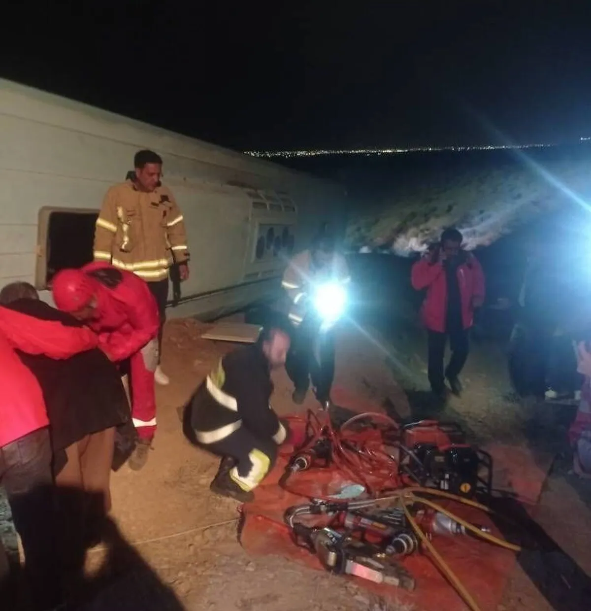 وی افزود: بلافاصله ٩ تیم عملیاتى هلال احمر به محل حادثه اعزام شدند.