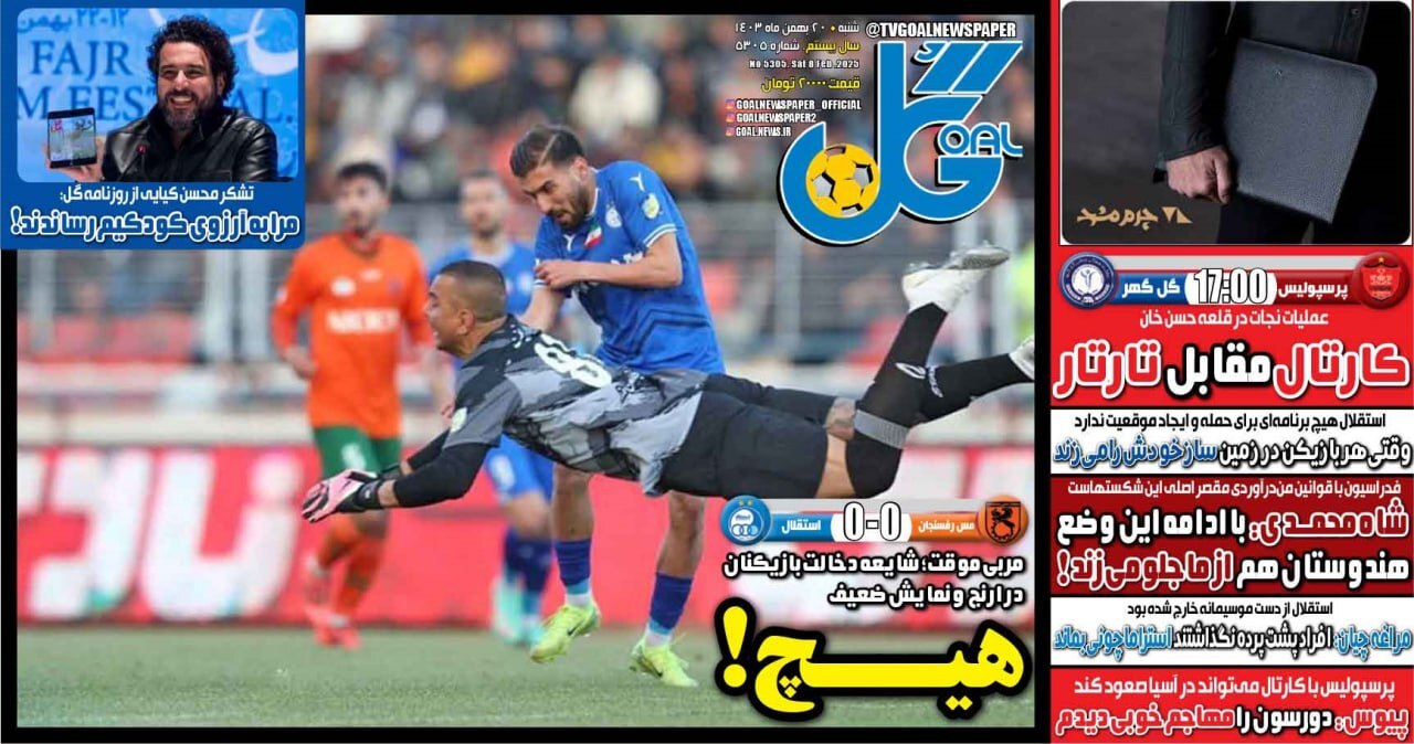 روزنامههای ورزشی شنبه 20 بهمن ۱۴۰۳