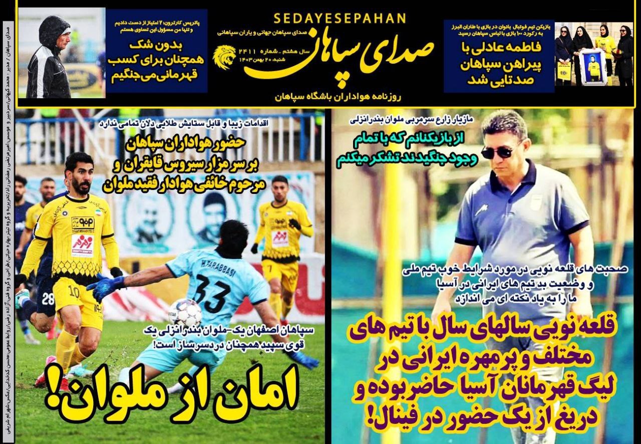 روزنامه‌های ورزشی شنبه 20 بهمن ۱۴۰۳