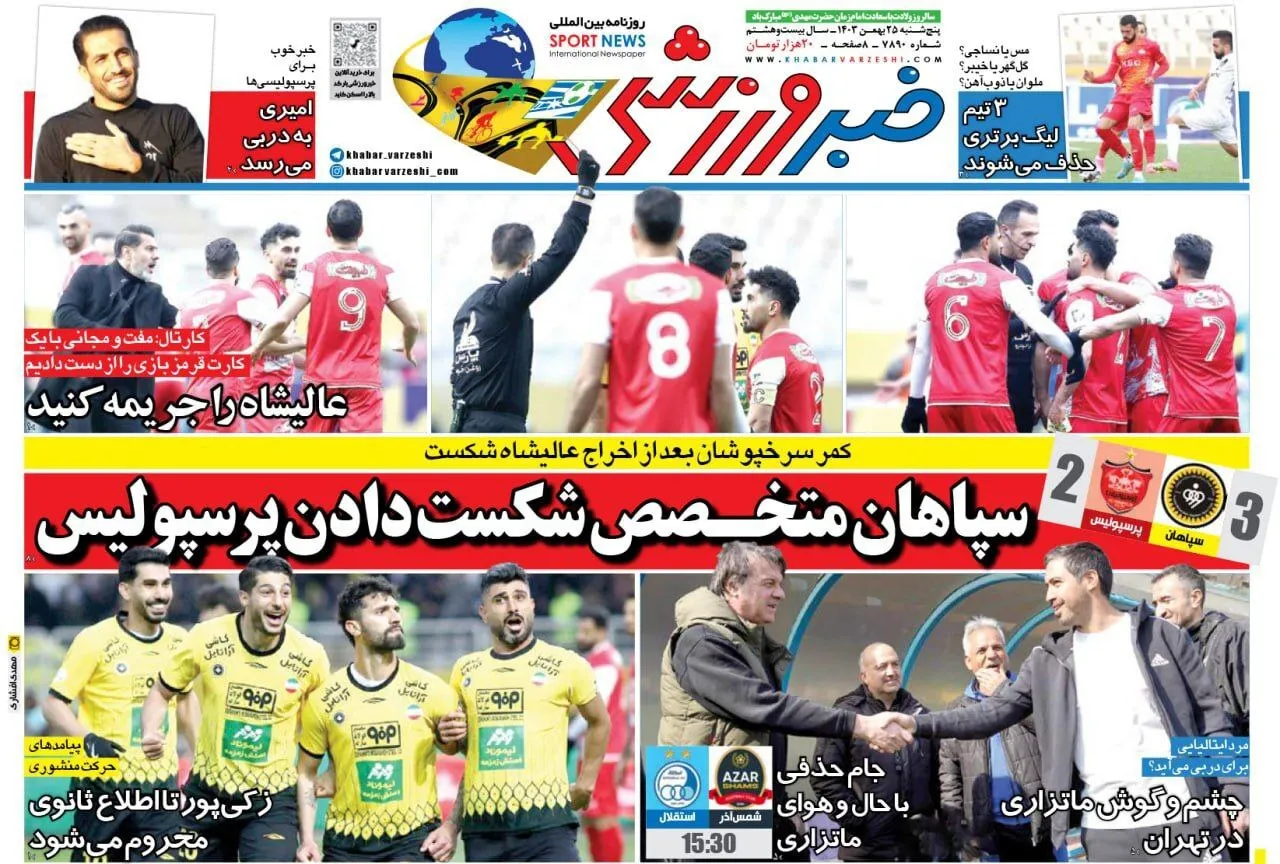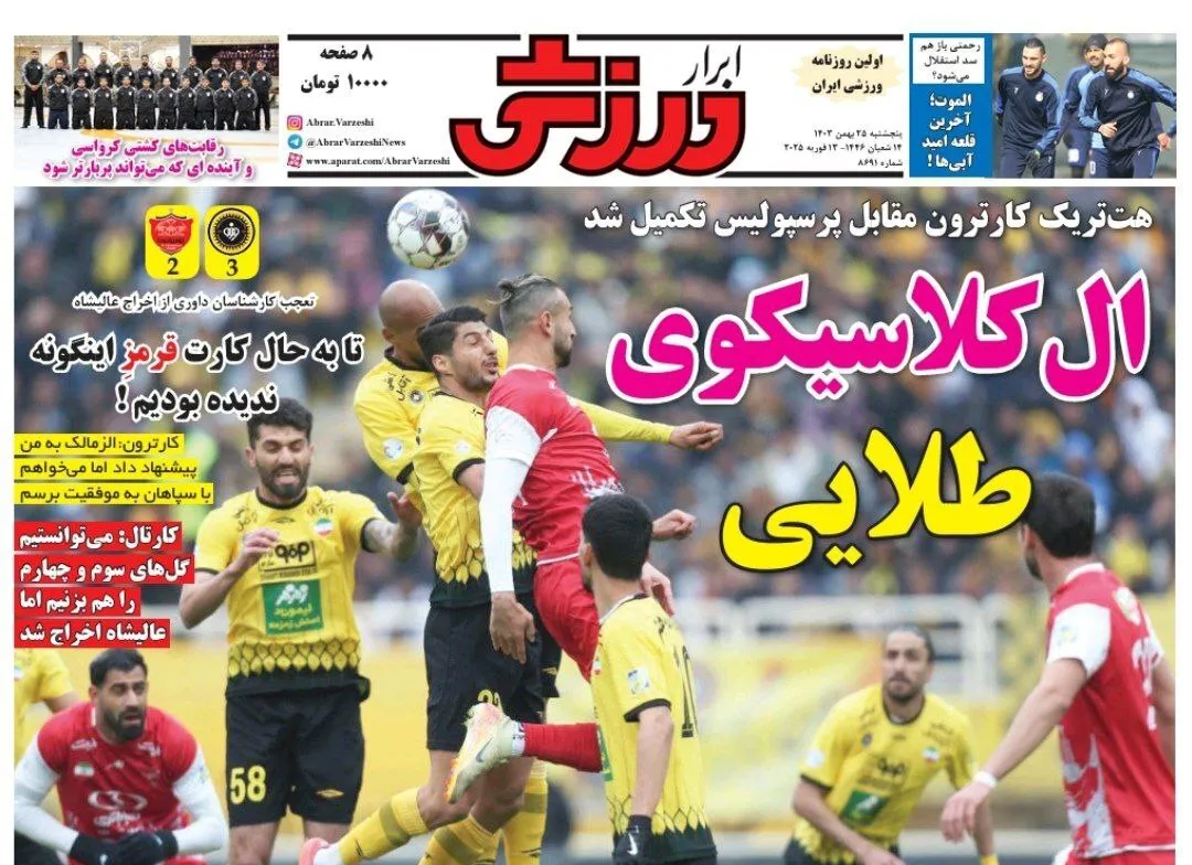 روزنامه های ورزشی پنجشنبه 25 بهمن 1403