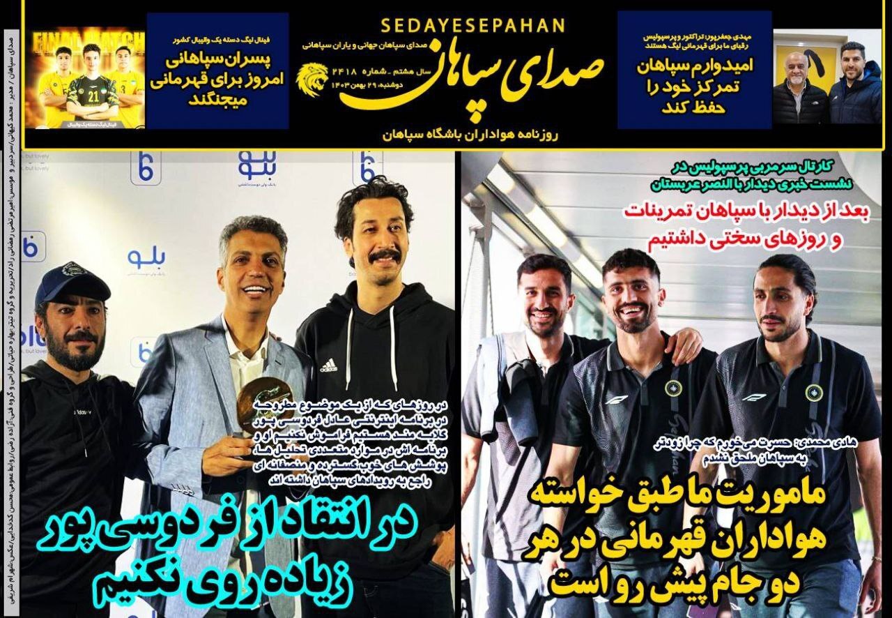 روزنامه های ورزشی دوشنبه 29 بهمن 1403