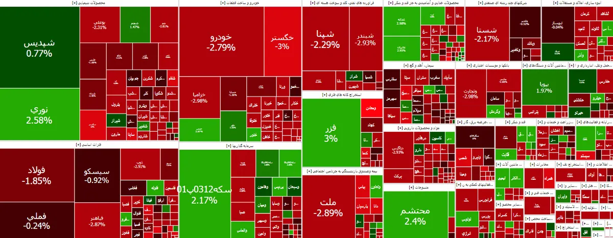 در معاملات امروز بازار، شاخص کل بورس تهران با ۱۸ هزار و ۱۰۵ واحد کاهش در ارتفاع ۲ میلیون و ۷۱۴ هزار و ۱۲۲ واحدی قرار گرفت.